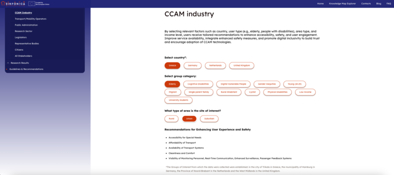 The architecture, illustrated bellow, supports end users, including policymakers, developers, and researchers, in deploying CCAM solutions that are inclusive, user-oriented, and aligned with CCAM users’ expectations. By mapping and synthesizing knowledge assets, the Knowledge Map Explorer sets a new paradigm for creating, sharing, and implementing domain specific guidance in CCAM.